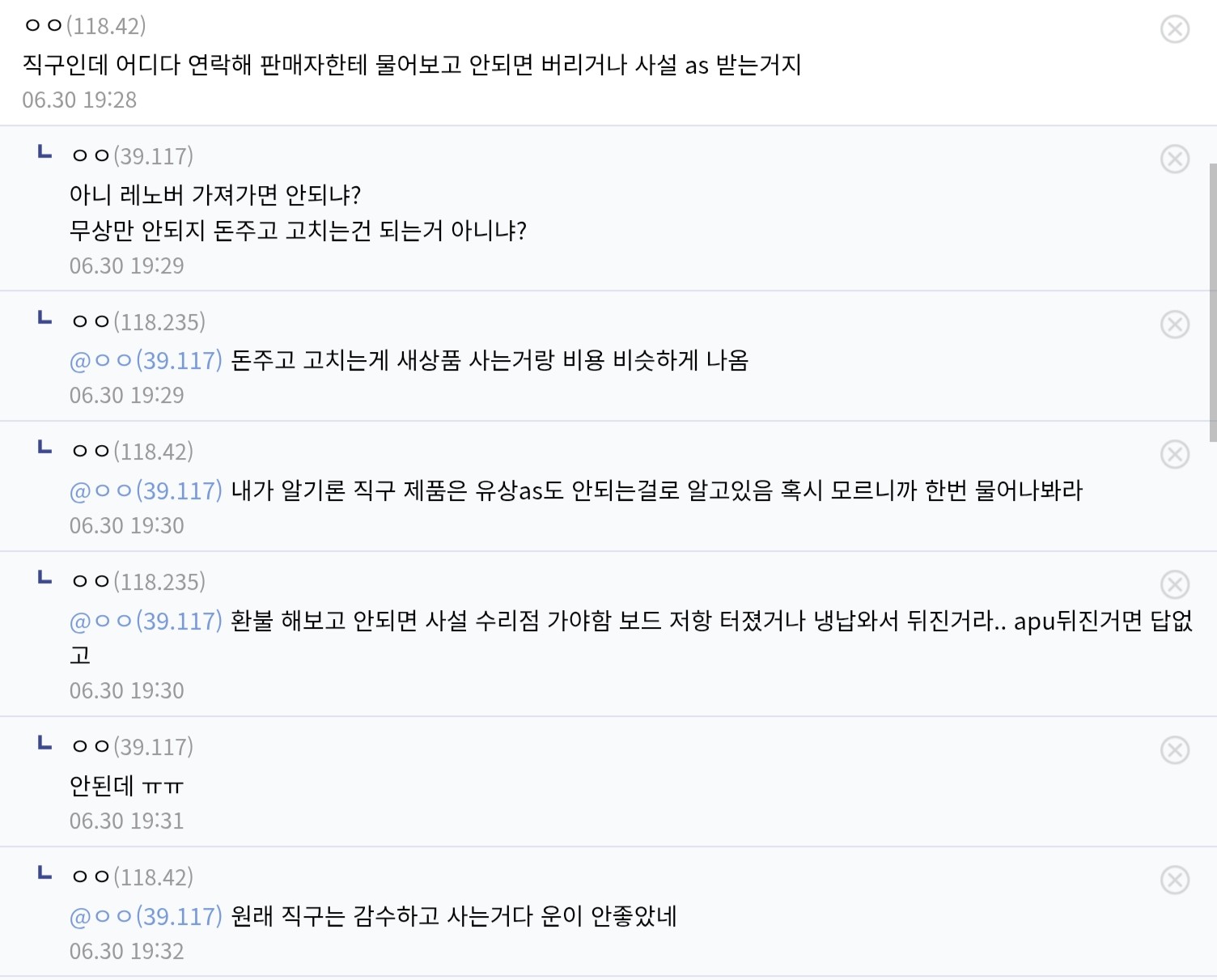 직구한 사람이 많지 않음을 감안했을때 상당한 불량율이 있는걸로 보입니다.