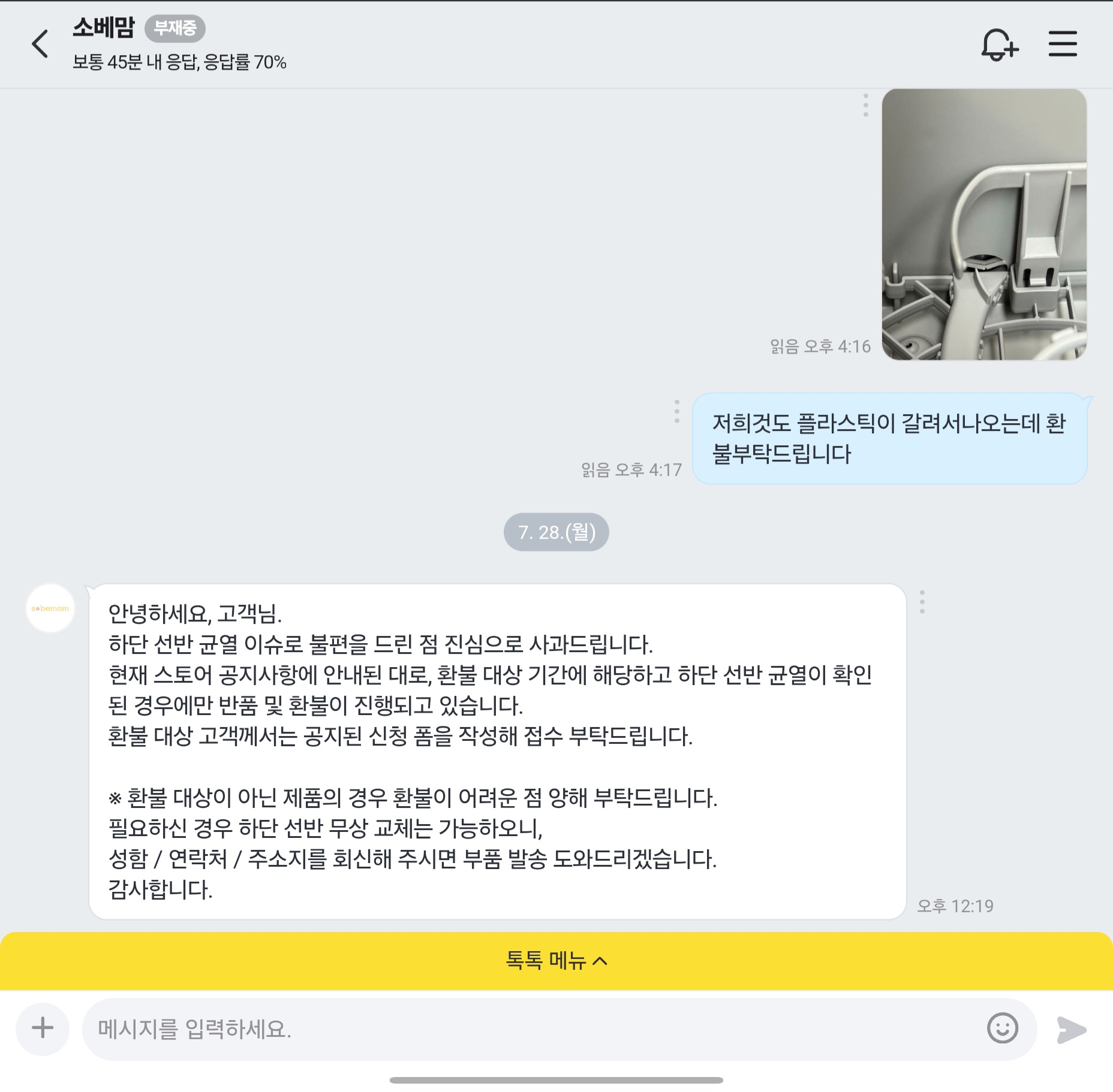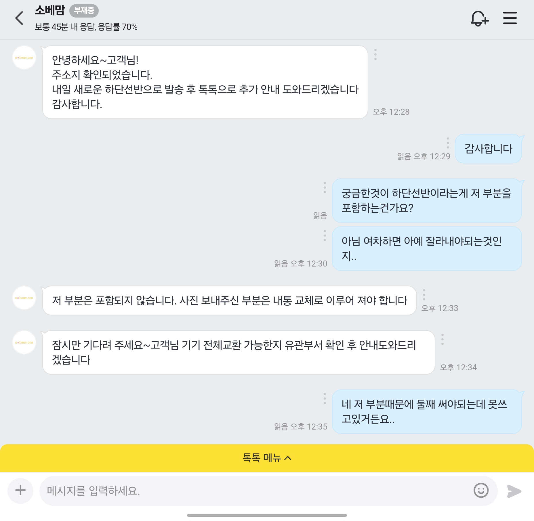 그래서 어쩔수 없는가보다..했는데 전체교환을 해주신다는...?? 정말 예상치 못했던 답변이었고